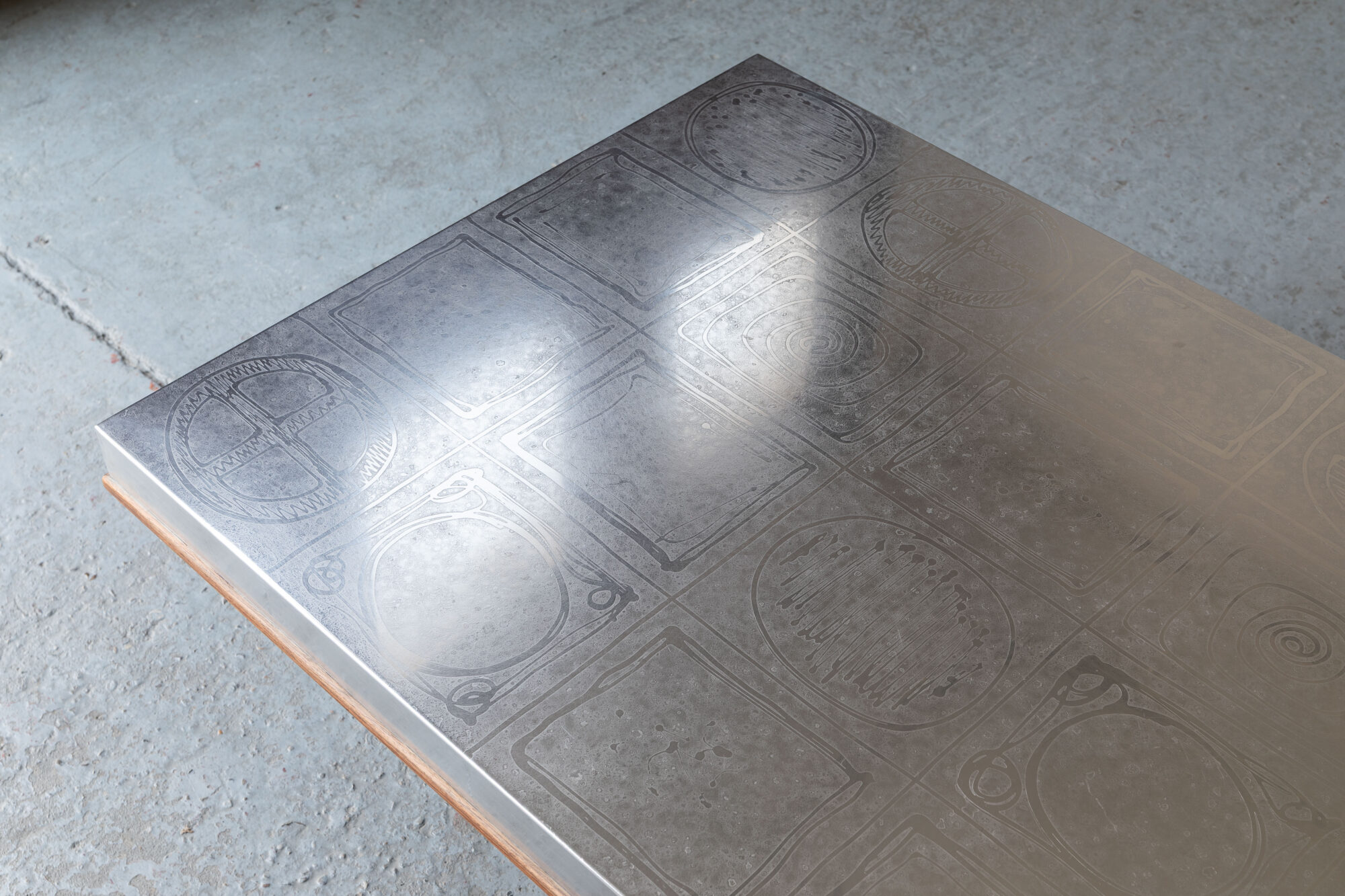 This coffee table was designed and produced by by Heinz Lilienthal in Germany during the 1970’s. With a statement piece like the E6, you’ll have a conversation starter for sure! A piece of brutalist art with an acid etched aluminium top on wood and amazing feet in laquered resin. A few light scratches on the top and some spots on the lacquer. But further in very good condition.