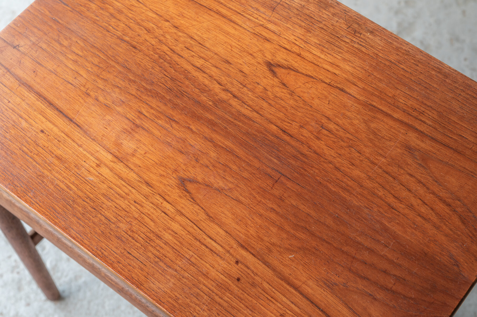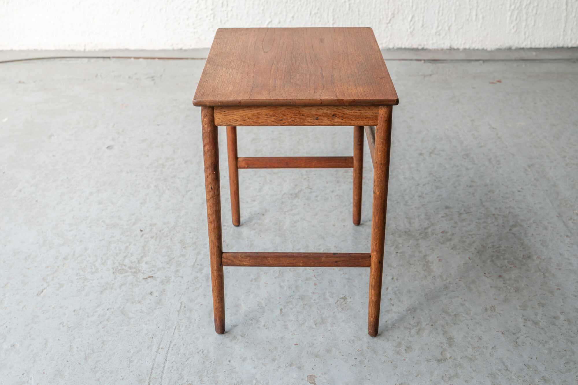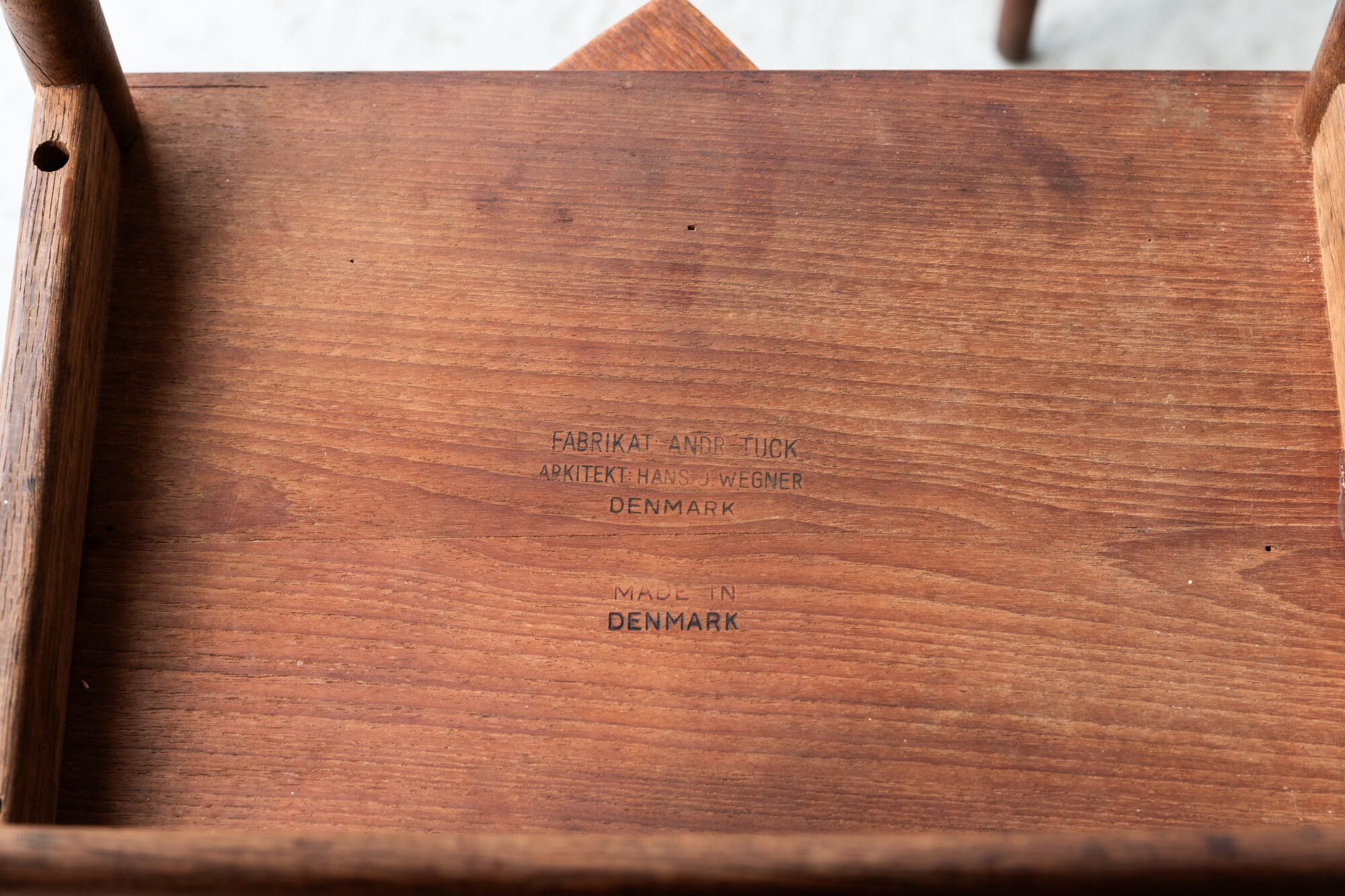 Set of 3 nesting tables designed by Hans Wegner and produced by Andreas Tuck in Denmark during the 1960’s. The teak tops were combined with sleek oak legs. These elegant tables fit nicely into each other. The tables show some scratches and using marks and beautiful patina from a previous life, as shown in the pictures. Overall in good condition. One table carries the maker’s mark underneath.