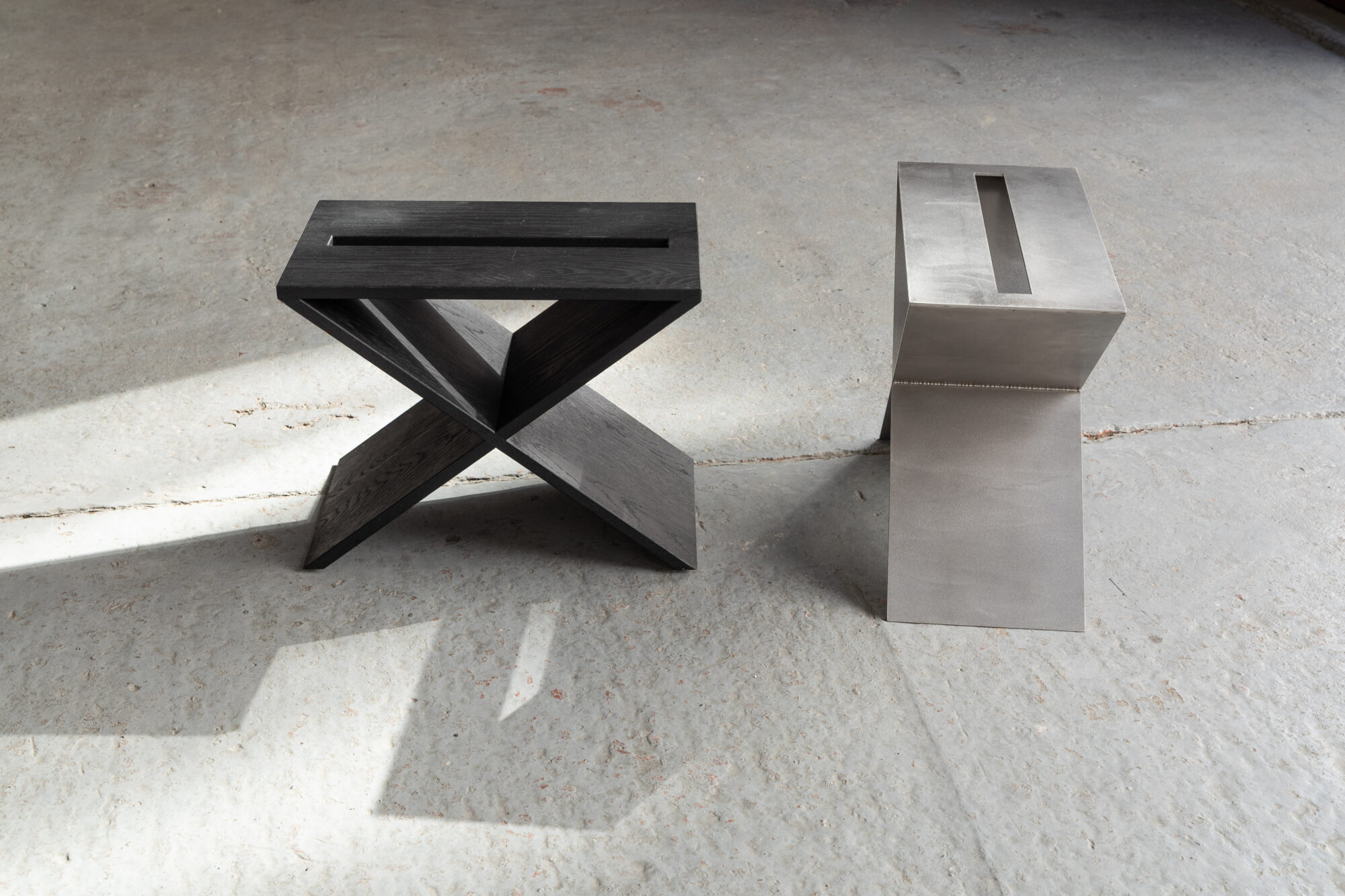 This solid oak side table / stool is a contemporary design by Lena Coupez, produced locally by hand by local craftsmen in Belgium since 2024. Lena’s work merges minimalist aesthetics with contemporary functionality. The Ghent based young designer is clearly inspired by her passion for mid-century modern design. This side table is very sturdy and can function as a stool or, upside down, as a magazine rack as well. The durable material is balanced with elegant forms, emphasizing the craftsmanship. Besides this oak piece, there’s also the LC02 in stainless steel that can be ordered