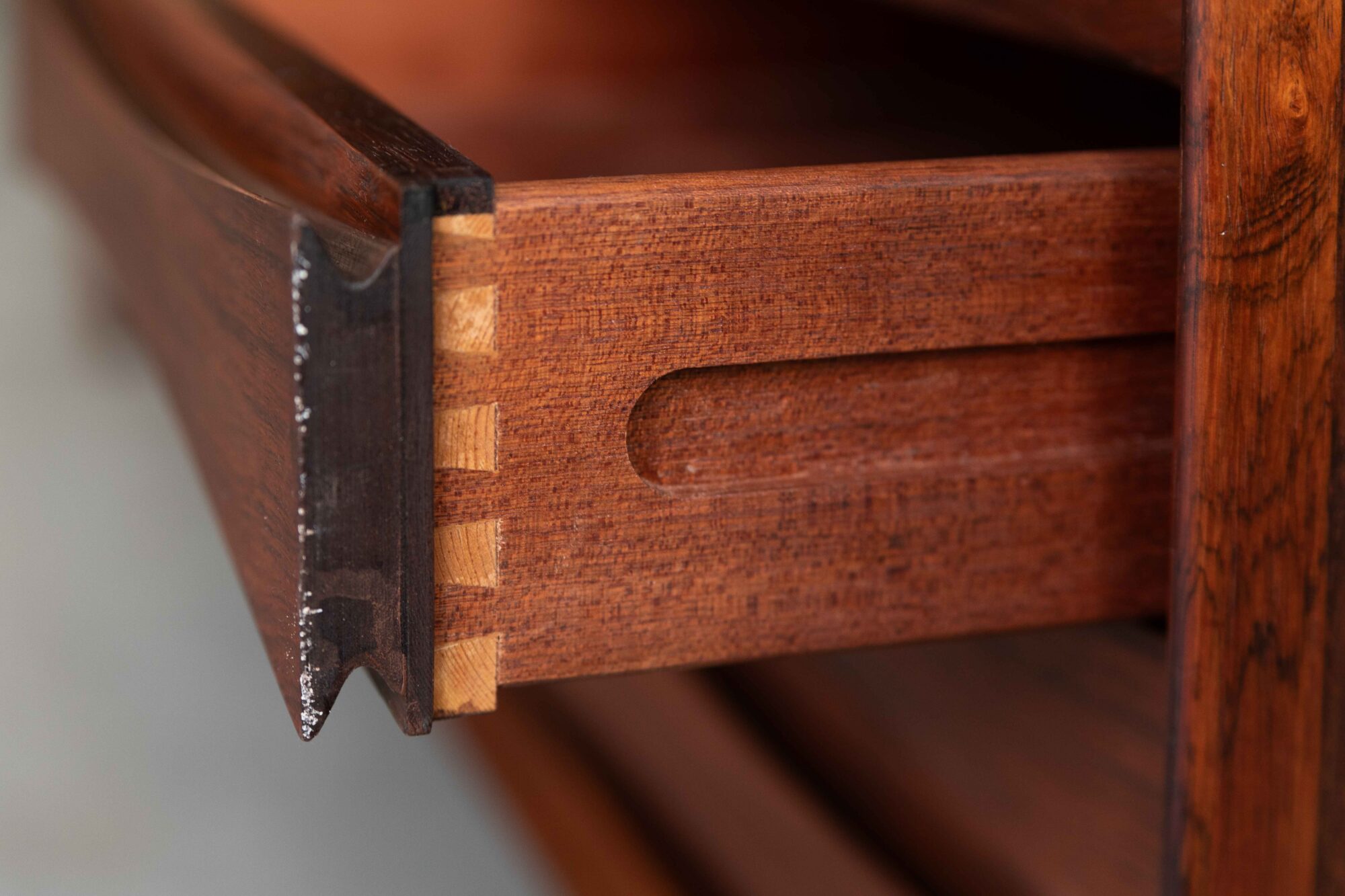 Many of Vodder’s pieces, created for manufacturers like France & Søn, Fritz Hansen, and Sibast, feature restrained forms that exude strength and durability, prioritizing substance over avant-garde style. He also had a refined eye for detail: the beauty of the grain in wood and the subtle, elegant finish of his pieces.